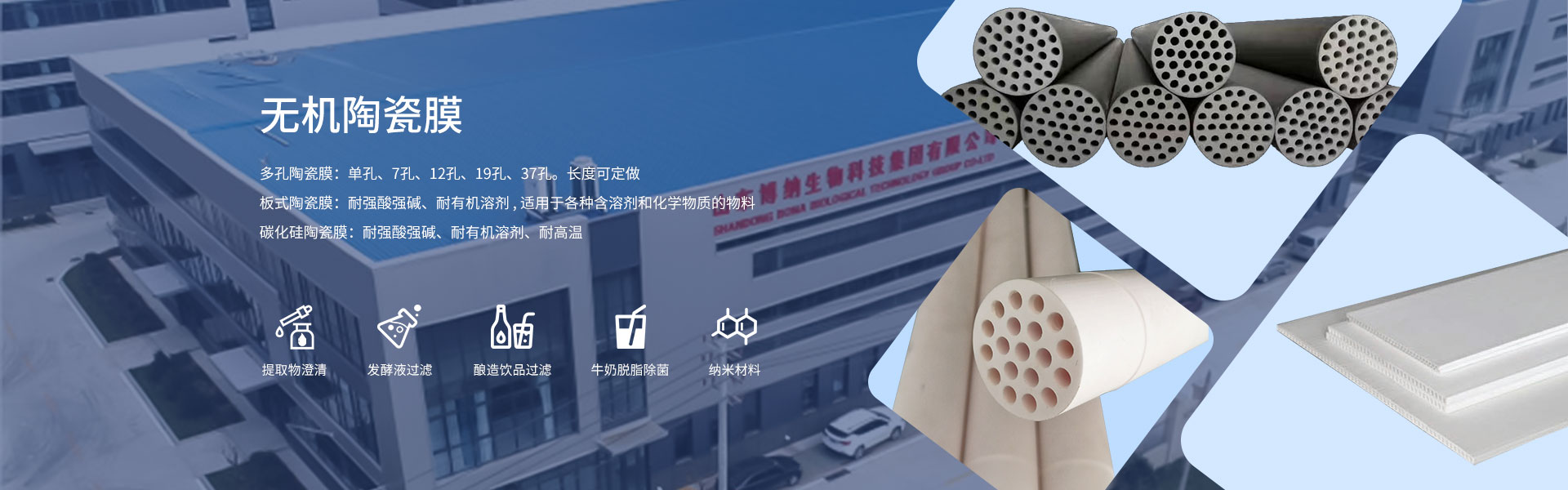 集团现有业务领域涵盖各类有机膜、陶瓷膜、中空纤维膜及相关膜过滤分离设备的生产、层析分离纯化相关技术服务提供,以及分离纯化领域综合解决方案落地等,此外企业还积累了丰富的重大项目工程技术经验和工业现场实践经验,可确保稳定优秀的产品质量以及大规模设备生产能力,涵盖合成生物学、医药、化妆品、医疗器械、血液制品、食品、保健品等领域。