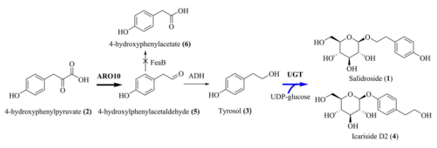 引自:Production ofsalidroside in metabolically engineered Escherichia coli