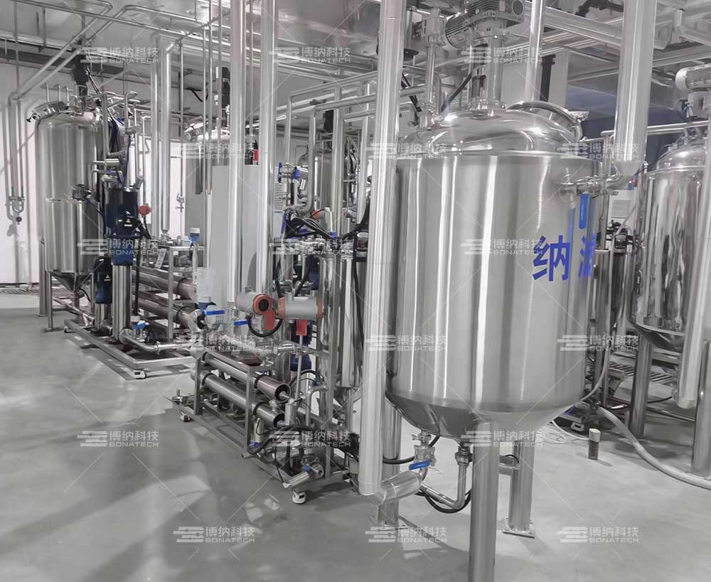 博纳科技成功的将膜分离技术运用于中药口服液的澄清除菌工艺中,优化了传统工艺,研究设计出整套适用于中药口服液生产的微滤和超滤膜分离系统,并在工业中得到广泛的运用,能够很好的解决细菌污染和产品返浑现象,保证了产品品质的同时为企业带来可观的经济效益。结合自身的专业关键技术,针对不同复方口服制剂,选择不同的物料分离膜元件,在不同操作参数控制下,使口服液保证了含量指标的转移,同时解决了澄清过滤难题,口服液灌封灭菌,长时间放置等条件下,仍然澄清透亮,灯检无可见异物,色泽好。