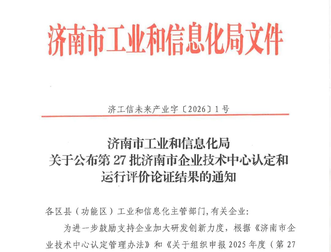 此次博纳科技成功通过“济南市企业技术中心”认定,展现了领先的科技创新水平与产品技术实力,并为下一步申报省级企业技术中心奠定了良好的基础。