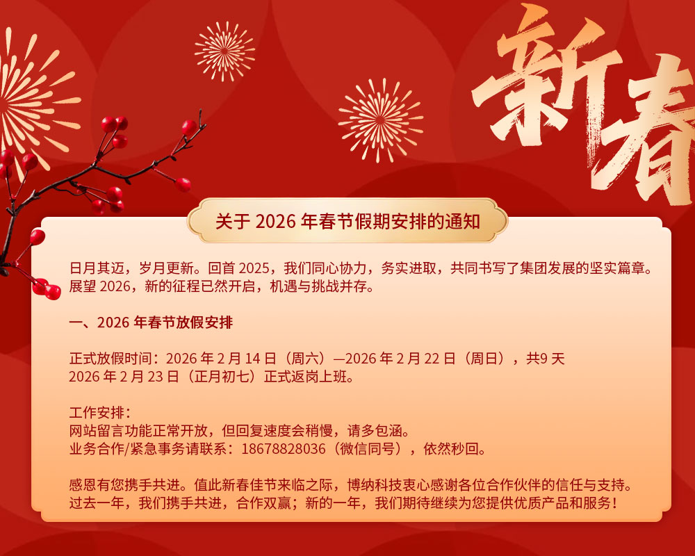 感恩有您携手共进。值此新春佳节来临之际,博纳科技衷心感谢各位合作伙伴的信任与支持。过去一年,我们携手共进,合作双赢;新的一年,我们期待继续为您提供优质产品和服务!