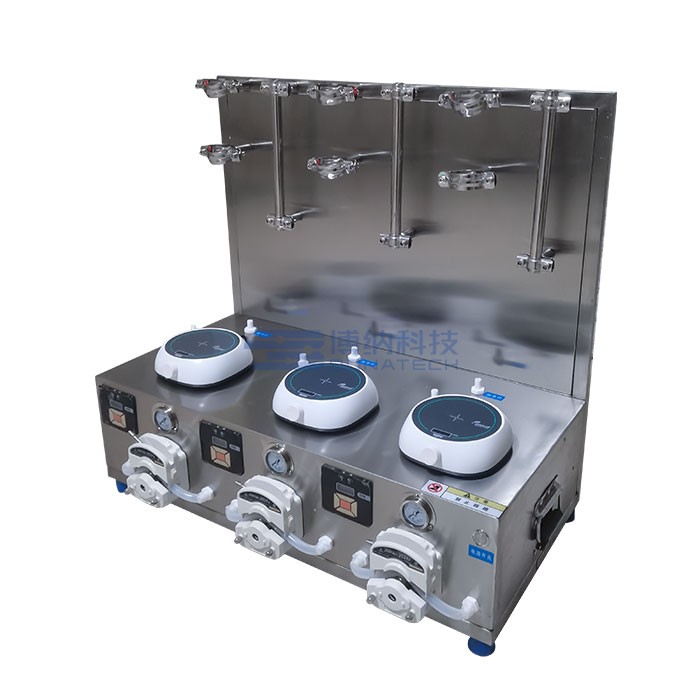 1、每台泵速度可单独运行单独调速,加压动力组件采用定制蠕动泵,噪声小、压力平稳、性能可靠,并加以变频控制功能,流量可自由调节。通过按键可以调整物料进料流量,保证不同物料在不同流速下进行试验;
