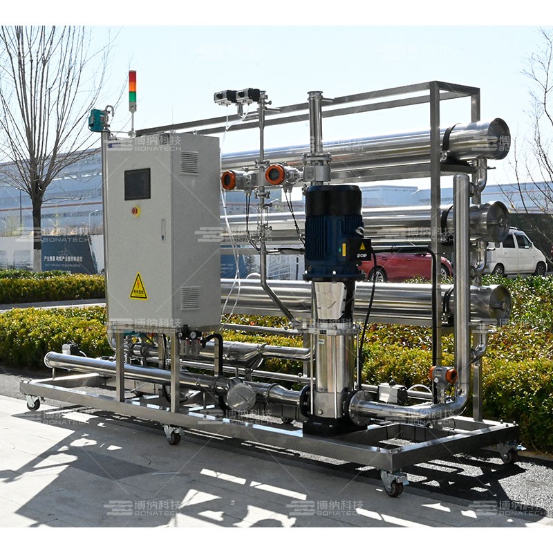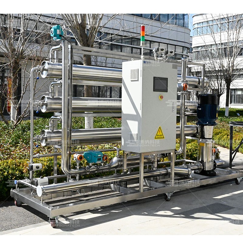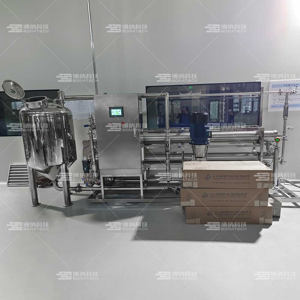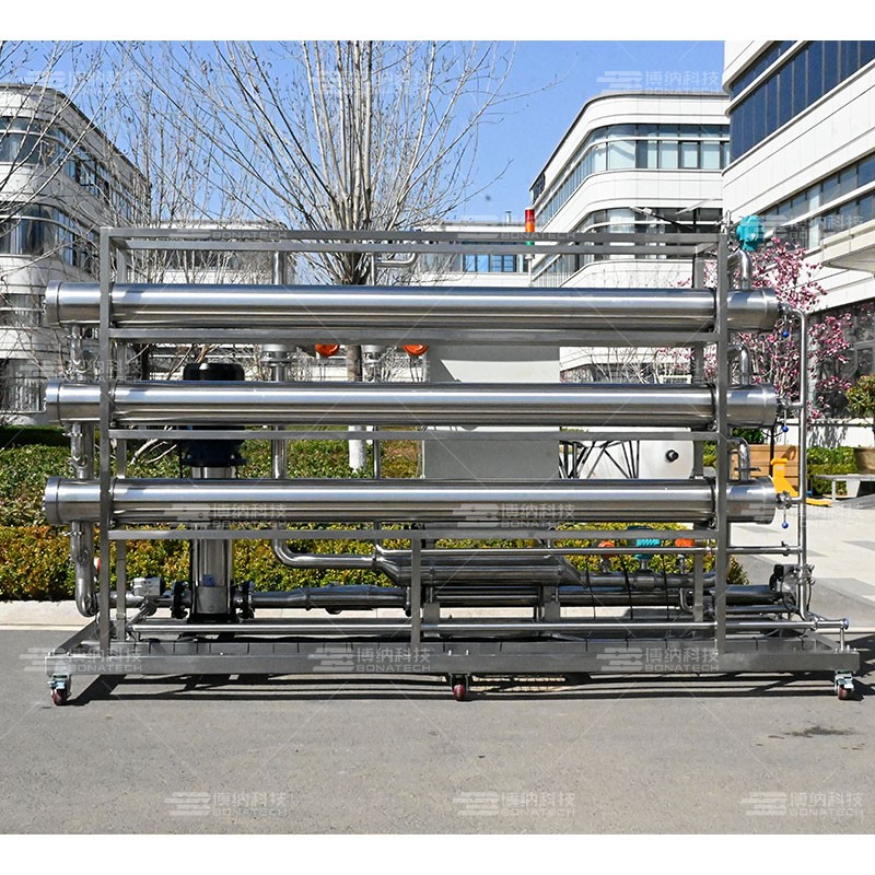 超滤设备工作过程中,水溶液在压力推动下,流经膜表面,小于膜孔的深剂及小分子溶质透水膜,成为净化液(滤清液),比膜孔大的溶质及溶质集团被截留,随水流拍出,成为深缩液。超滤设备的工作过程是动态过滤,分离是在流动状态下完成的。溶质仅在膜表面有限沉积,超滤速率衰减到一定程度而趋于平衡,且通过清洗可以恢复超滤设备工作性能。