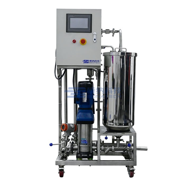 陶瓷膜中试过滤系统BONA-GM-M22,可换装不同精度的微滤和超滤陶瓷膜元件,主要用于实验室内料液的澄清、过滤、浓缩、分离、提纯、脱盐等工艺实验。