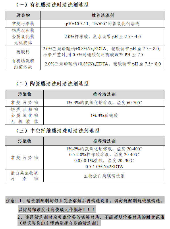 清洗剂的选择要满足不产生二次污染的原则,并且不要生成对水质产生严重影响的物质。不同行业和不同污染类型可能需要不同的清洗方案和清洗剂产品,因此在实际应用中,应根据具体情况选择合适的膜清洗剂。