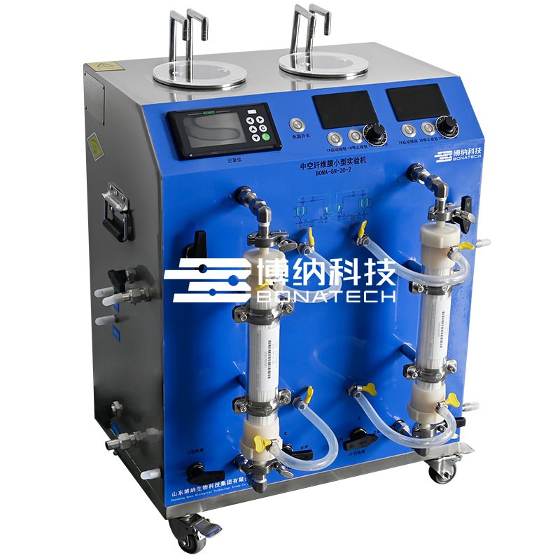 中空纤维膜分离实验机可以换装各种截留分子量的中空纤维膜元件(MF、UF)。广泛应用于生物、制药、食品、化工、环保等领域,用于料液的分离、提纯、澄清、除菌等工艺实验。